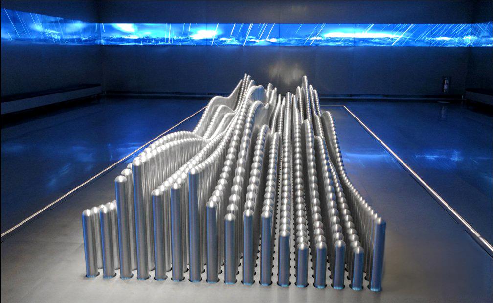 多媒體裝置藝術(shù),是指藝術(shù)家在特定的時(shí)空環(huán)境里,將人類日常生活中的已消費(fèi)或未消費(fèi)過的物質(zhì)文化實(shí)體、進(jìn)行藝術(shù)性地有效選擇、利用、改造、組合,以令其演繹出新的展示個(gè)體或群體豐富的精神文化意蘊(yùn)的藝術(shù)形態(tài)。簡單地講,裝置藝術(shù),就是“場地+材料+情感”的綜合展示藝術(shù)。其中結(jié)合燈光藝術(shù)、機(jī)械裝置、中控智能、互動(dòng)程序、影像藝術(shù)、聲音藝術(shù)等多方面的體念結(jié)合。